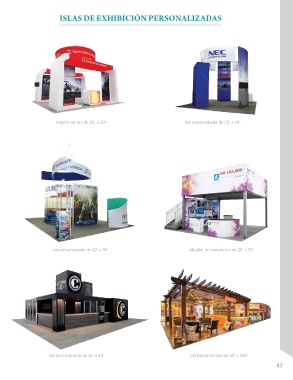 ISLAS DE EXHIBICIÓN PERSONALIZADAS Alquiler de isla de 20' x 20' Isla personalizada de 20' x 20' Isla personalizada de 20' x 30' Alquiler de plataforma de 20' x 30' Isla personalizada de 40' x 40' Isla personalizada de 40' x 100' 47