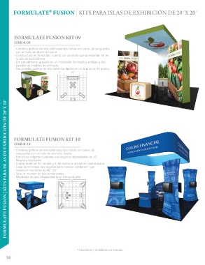 - Dos paredes gráficas de tela doble faz fijadas en un ángulo de 45 grados
