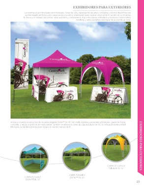 la marca y el mensaje para atraer a los visitantes y compradores. Elija entre carpas estándares y accesorios relacionados,